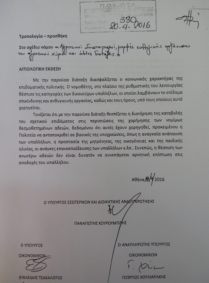 Με πρωτοβουλία της Π.Ο.Ε.-Ο.Τ.Α., κατατέθηκε Τροπολογία του ΥΠ.ΕΣ.Δ.Α.,
